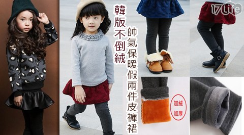 後來發現..這邊買 韓版不倒絨帥氣保暖假兩件皮褲裙" CP值真的頗高!